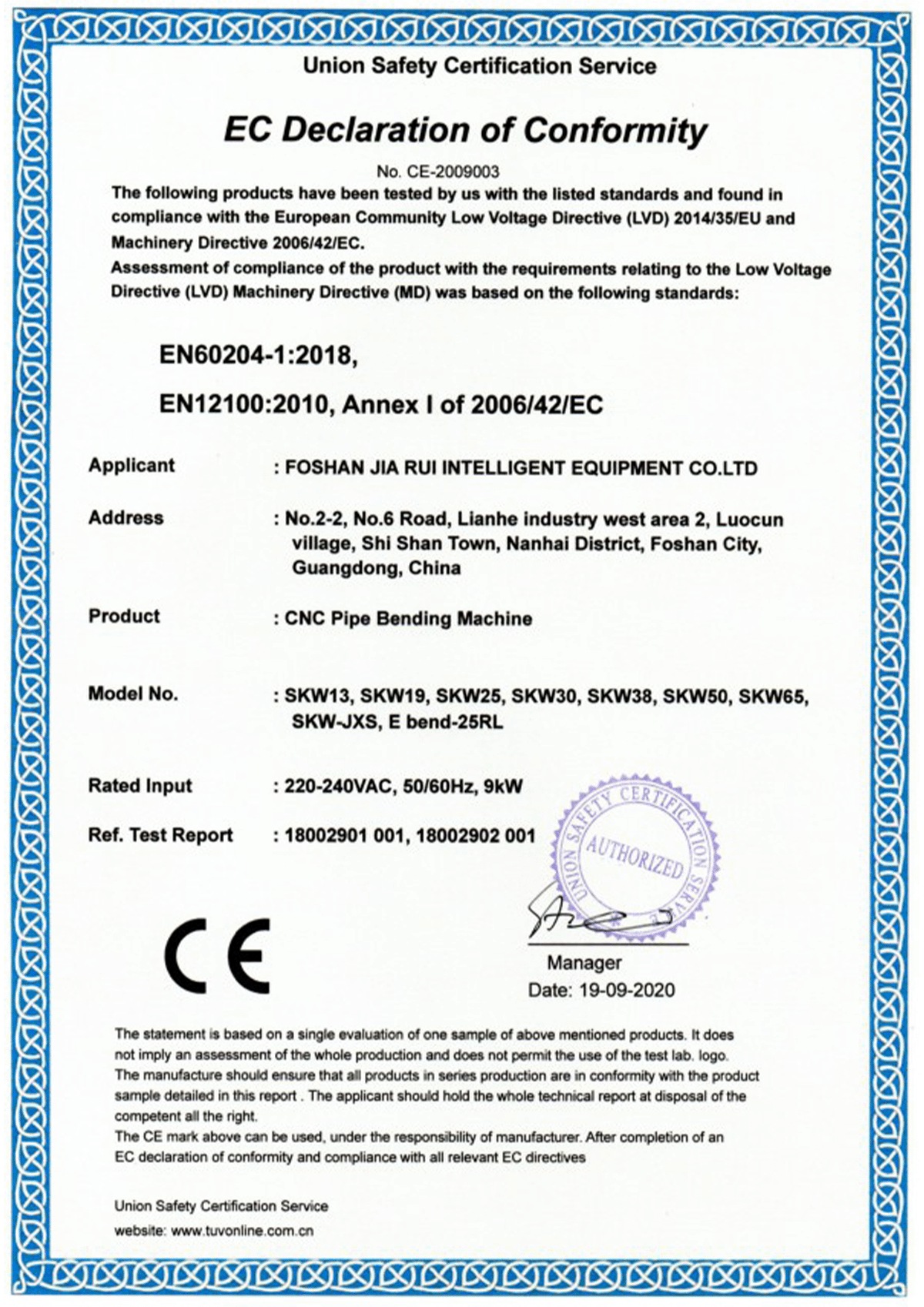 公司成立20年来,秉承匠心制造、勇于创新的宗旨,致力于研发管材、线材加工的内高压成型技术、管端成型、折弯成型、机器人自动化柔性生产线制造技术。广泛应用于汽车管路、电动车车架、空调制冷、医疗器械、航空航天仪器、家具制造、运动器材等行业。