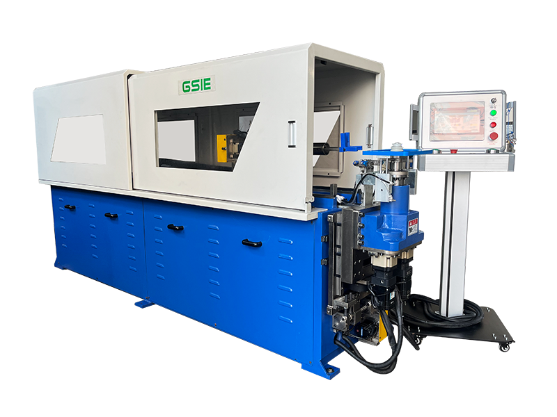 WXJ系列数控线材折弯机是针对实心线材折弯而设计的专用加工设备,可折弯φ4至φ12(铜、铝)的线材。该机线材夹紧机构采用气动控制,Y、B、C坐标系。机头升降、横向移动、轮模旋转、杠杆旋转均采用伺服驱动。整机控制采用微机控制,可实现四轴同步运动、主动折弯、被动折弯等复杂功能。